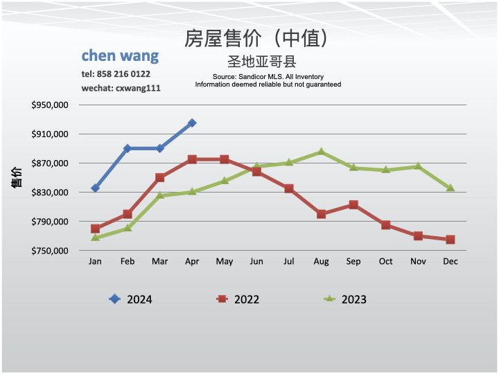 圣地亚哥市56高速走廊地区2024年4月份房屋销售价格,销售数量,库存量都大幅度增加。贷款利率也在继续升高。