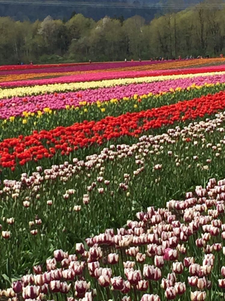 4月6日,父母从国内来温哥华探亲一个周了,这天是周日,睡懒觉到10点起来边吃早饭边看微信,朋友圈被郁金香刷屏了!于是,忽然放下饭碗对父母说,走,带你们去看郁金香!于是,就去了Agassiz!注意,我是第一次当天往返260km长途开车滴!很有成就感!