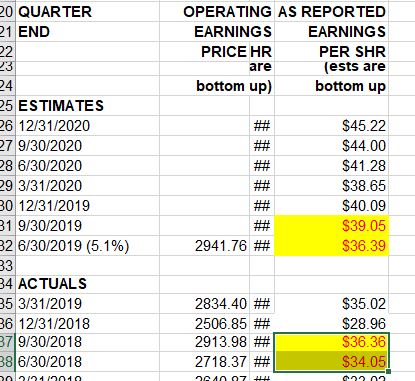 上个月很多媒体说S&P500将进入盈利衰退,就是连续两个季度盈利比去年同期下降。可最新数字显示3Q2019盈利39.05vs3Q2018盈利36.362Q2019盈利36.39vs2Q2018盈利34.05连续两个季度盈利比去年同期上升。不知道媒体所说的盈利衰退从何而来。投资要自己认真研究,不能听媒体瞎忽悠。[