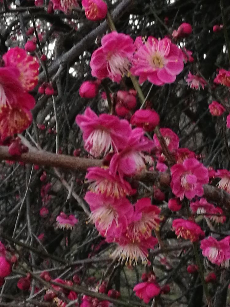 记得小时候,我家门口不远的地方有一棵梅花树。印象中开在雪地里的是红色的花,也是奇香无比。冬天的时候,妈妈有时会折些回来插在花瓶里,给单调的冬日增添些活泼和灵动。原以为腊梅和红梅是同一种花, 今天才明白它们是那么的不同,至少红梅的花瓣绝对没有蜡质的感觉,倒是更像桃花和李花。认真学习了一下,才明白它们的确是不同的植物,尽管开花时间相近,花香也类似。腊梅是樟目腊梅科腊梅属的植物,开黄花。而我们所说的红梅是蔷薇目蔷薇科杏树的小乔木或灌木。梅花是中国十大名花之一,与兰花、竹子、菊花一起列为花中四君子;又与松和竹并称为“岁寒三友”。在中国传统文化中,梅花被赋予了高洁、坚强、谦虚的品格,给人以立志奋发的激励。它开在百花之先,独天下而春。咏梅的诗不少,印象最深的是陆游的《卜算子·咏梅》