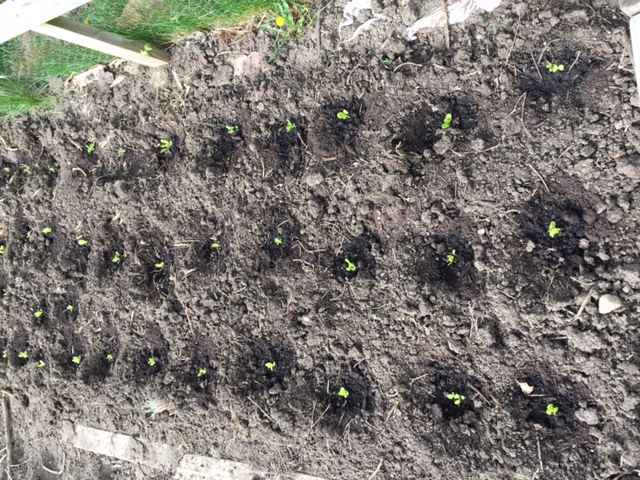 图1. 播种菠菜和小白菜 用点草(自己割下来的)覆盖一下,以便减少水分蒸发和防止土壤结块。