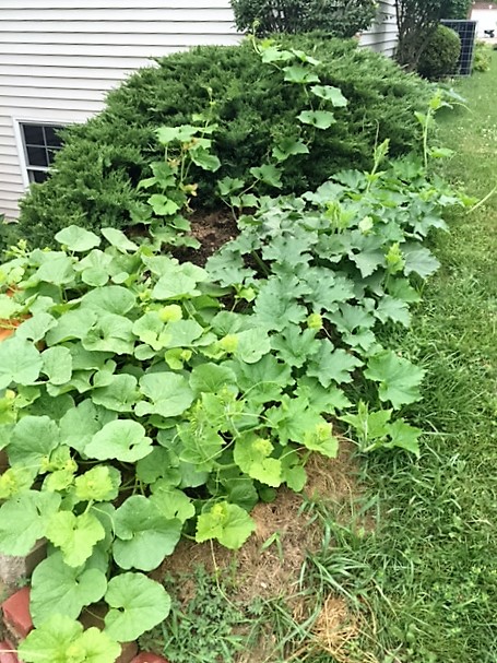 今年的瓜类看来没有像往年那样长得好,不知道为什么,种在主菜园边缘的瓜长长就慢慢的死去了几棵,剩下的也长不快。不过种花新坑里的菜瓜和冬瓜还不错。