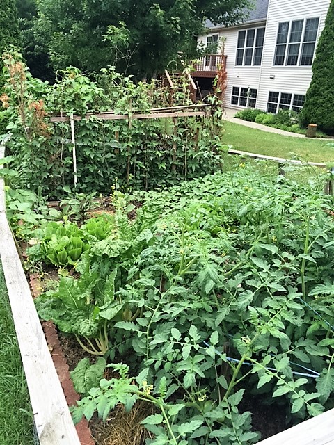 上周,菜园生长也许是最快的。那是因为气温高和雨水足。豆角和扁豆的花都开的很多,结的豆吗好像豆角相当不错,但扁豆都是没看到多少,难道真是苗叶长得太过于茂盛的缘故?我们摘除了一些叶子,希望对结果有些帮助。豆角和扁豆很快就可以收获第一次了。