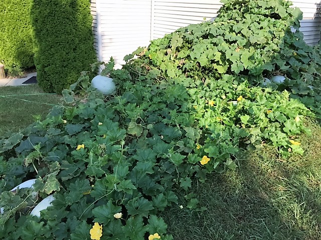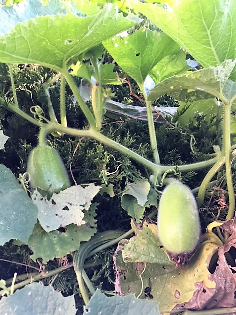 这周有几位朋友来看看我们的菜园,他们最惊讶的是我们的冬瓜。他们家的冬瓜苗早已经死了,把冬瓜摘回家后,不几天就烂去。我们的冬瓜就像地雷一样埋在瓜苗中。我们会在等等才收获的。收瓜的两点我们比较注意:一是等到瓜变白 (白粉改着), 或是等到瓜苗基本无生长现象有时转干。二是在天凉的太阳出来后收获。收获后,把瓜置于较干燥和凉快的地下室。不要和地直接接触。