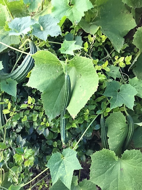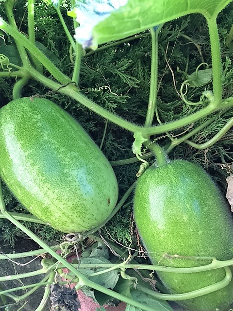 上星期有时高于通常的温度和湿度,菜园,特别是瓜类又长了不少,这在中西部是罕见的秋季,在过去是没有过的。我们已经收了几百磅的冬瓜。现在又有5-6个两磅大,瓜苗也长得好。如果还有一周的生长,这些瓜还是可以长大到5-6磅的。 除了冬瓜,丝瓜也是一样,有许多小瓜。