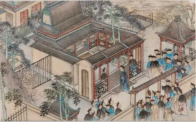 明代贡院举行考试的情景(《徐显卿宦迹图》,故宫博物院藏)