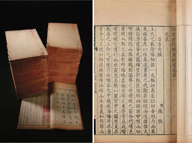此赋《文选》未收,所传亦不算广,但代不乏识者,唐欧阳询《艺文类聚》、宋李昉《太平御览》、明梅鼎祚《西晋文纪》等均收录。入清以后,康熙间敕修的几部大书,如张英《渊鉴类函》、张玉书《佩文韵府》,或录全文,或选小序;侍读学士陈元龙收入奉敕编纂的《历代赋汇》中,先于四十五年单独印行,再编入《四库全书》。庶常馆专设藏书楼,收藏宏富,加上历代皇帝皆多颁赐图书,对庶吉士当非罕见。上皇出题时,所据正是《历代赋汇》。敕谕称“朕向来命题,从不故求隐僻者”,也是实情。