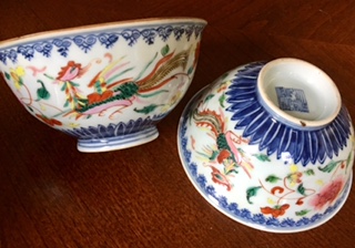 清乾隆青花粉彩凤鸡穿花纹对碗 清咸丰粉彩功名富贵罐