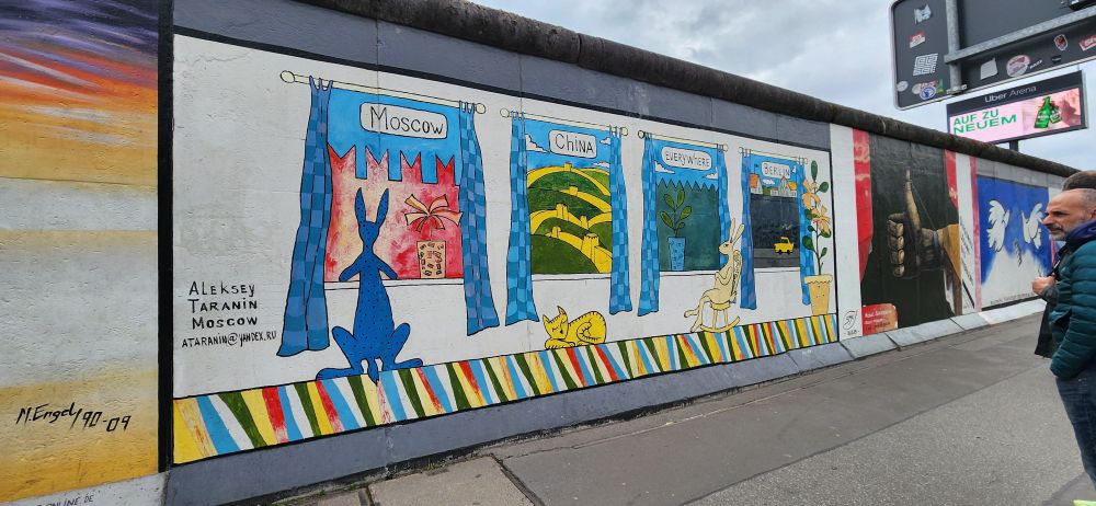 到柏林的第一天,我们不顾时差反应,放下行李就直奔著名的东边画廊。这是柏林墙现存最长的一段墙,也是最具艺术与情感浓度的地方。