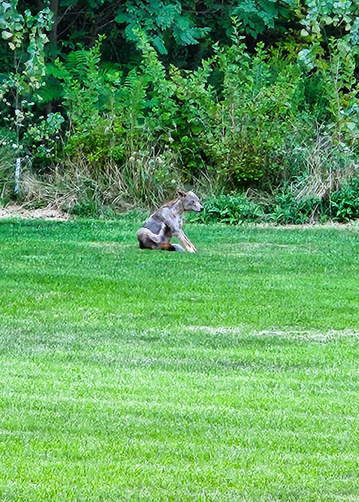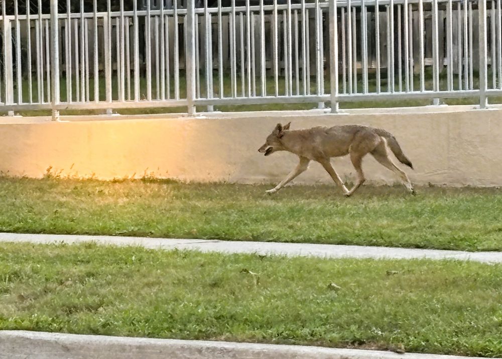 到了8月,一个清晨,空气很好,我们打算步行去附近的Tim Hortons吃早餐。路上遇到一位抱着小狗的老太太,她说看到郊狼,小狗被吓到了。