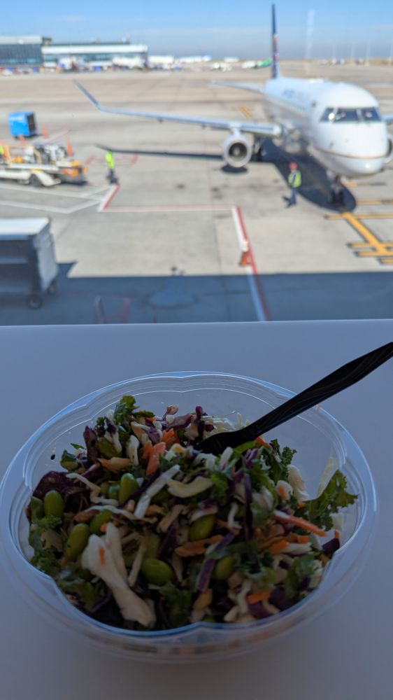 丹佛机场宽敞明亮。我买了 superfood 沙拉、火鸡三明治和牛奶,没有进餐厅,简单却满足。
