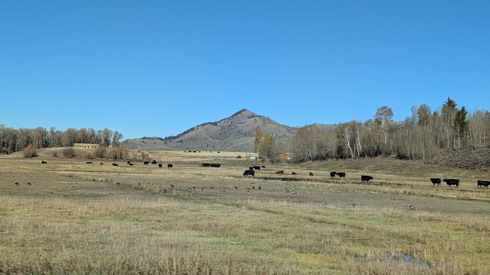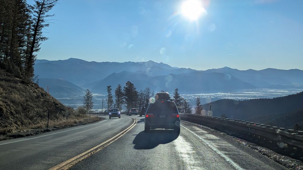 清晨我们翻越 Teton Pass,山路蜿蜒,云雾缭绕。阳光从山谷间洒下,照亮远处的雪峰,景色壮观,却也对驾驶是不小的考验——难怪冬季常常因积雪而关闭。