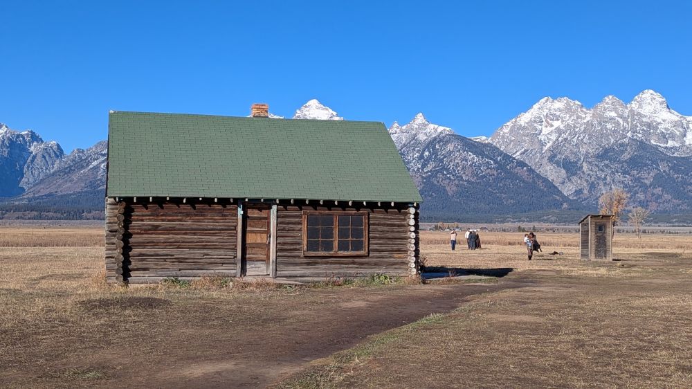随后,我们来到昔日摩门教徒的小社区。几排旧木屋、古老谷仓在蓝天与雪山映衬下,仿佛诉说着一个世纪前的故事。这里曾经是一片活跃的摩门教徒的社区,有学校,有医院,五脏俱全。