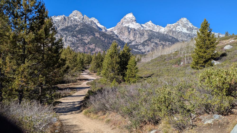中午,我们按计划徒步 Taggart Lake Trail,整个行程3.8 miles (6.1 公里), 约两个半小时。一路上,提顿山脉如流动画卷相伴,但高原稀薄的空气让人略感疲倦。