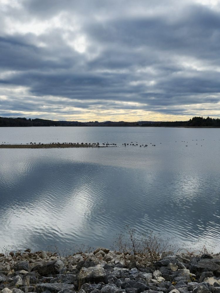 初冬的 Island Lake,有一种轻柔的静谧。湖面低垂,水色灰蓝,偶尔被野鸭划出细碎波纹;湖边的树林披上浅棕、深棕、灰褐交错的色彩,风轻轻吹过,带着水和土的气息。没有城市的喧嚣,只有步伐、风声和湖水低语。