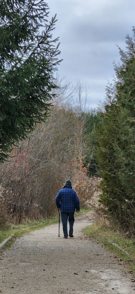 沿着小路继续前行,我们看到一位老人拄着拐杖缓慢地走着。他的背影沉静、从容,象是被光包围着。身影在湖边的小路上显得那么朴素,却又坚定,象是走了很多年的路,也象是在和这片湖熟悉地寒暄。人与自然之间,其实可以有一种默默的陪伴。