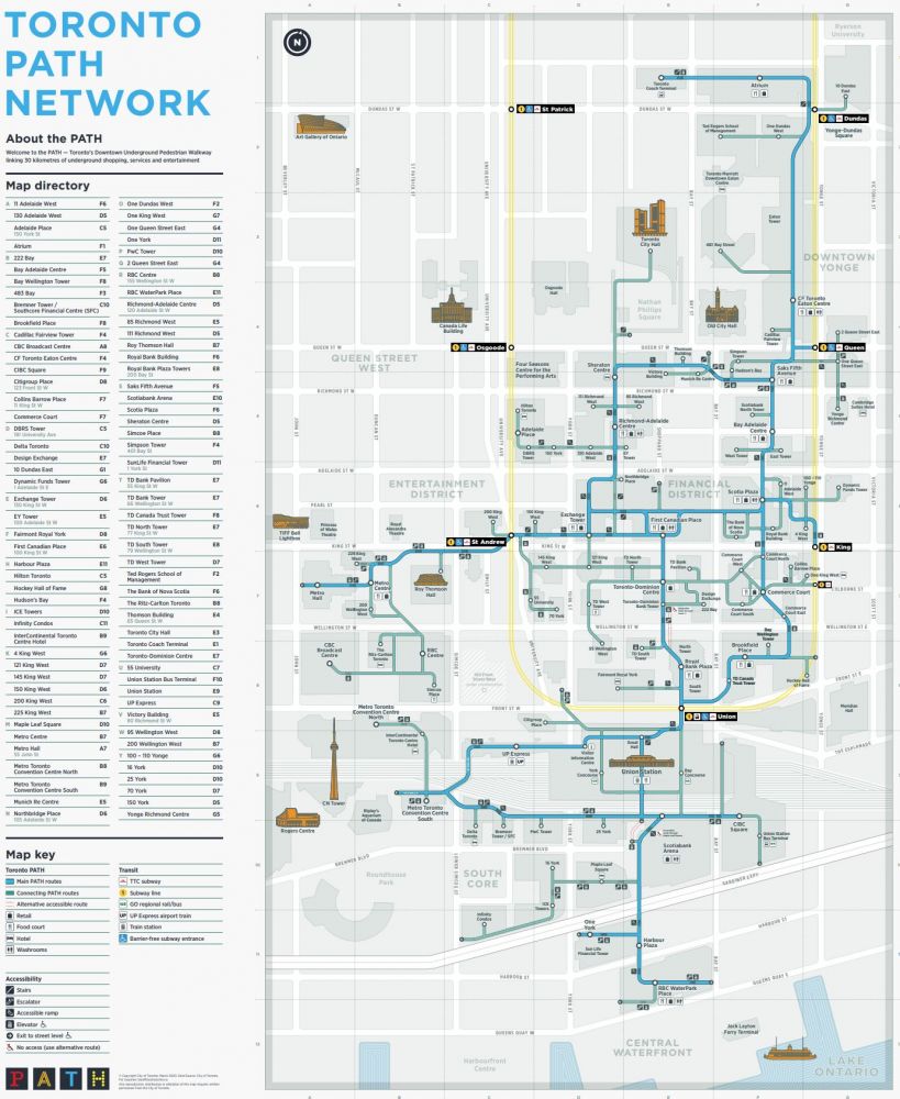 这是PATH的地图。感觉整个多伦多市中心的地下都被这个庞大的网络覆盖了。
