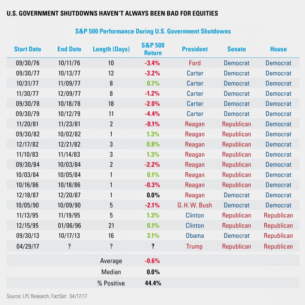 老头今天有点时间,写几句关于可能的政府关门对股市的影响。先说结论,基本没有影响。下面的表格是从网上顺来的,统计了1970年以来的所有政府关门时间对股市的影响,大家自己解读。