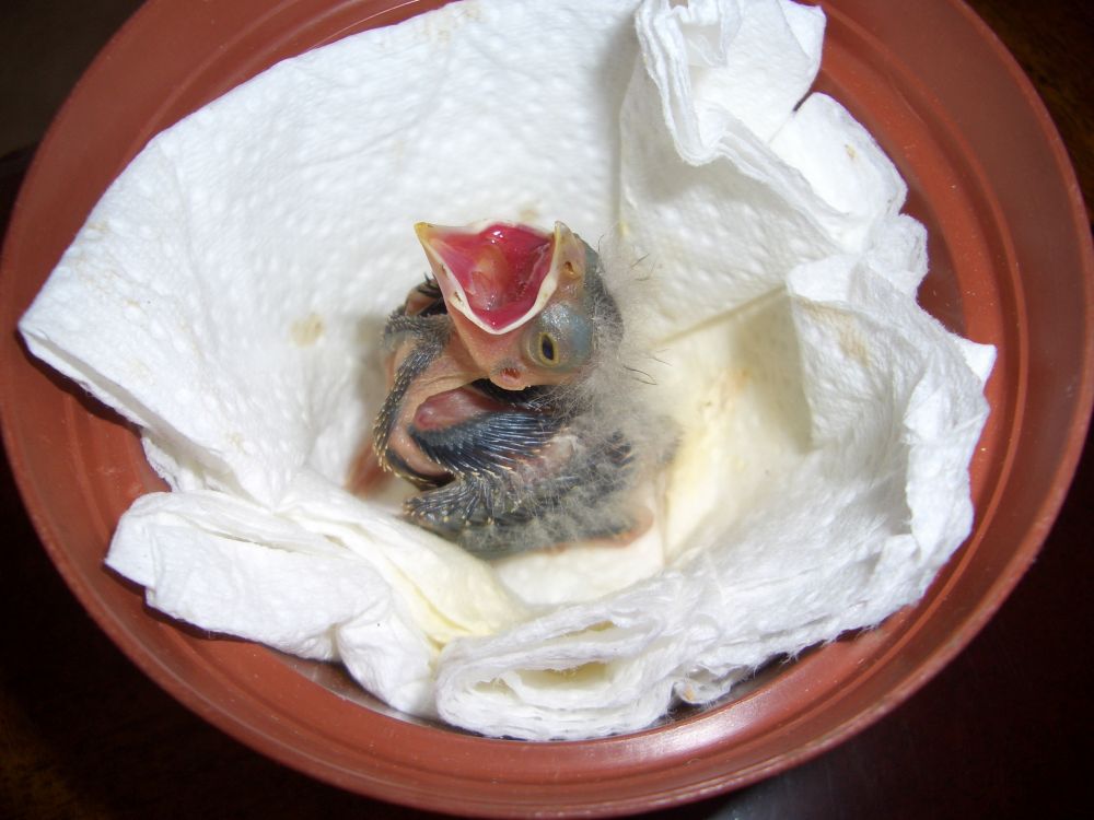 还有一只鸟值得一提,那是一只非常聪明的雌性ROBIN。有一对ROBIN夫妻把家选在一栋公寓楼的窗式空调机的夹缝里。它们的孩子还没有满月时,有顽皮孩子用棍捅坏了它们的家,几个小ROBIN流落街头。其中一只雌性小ROBIN被我女儿在放学的路上捡回来,她求我救救这只小ROBIN。我知道这种半大的野生鸟是很难人工喂养的,因为鸟有一种叫做IMPRINT的特性,具体说就是鸟类孵出后,会对第一眼看到的移动物体有着强烈的依附本能,并会持续一生。但看到这只失去父母的小ROBIN太可怜,我想不妨试试。我们在车库里给她安了一个家,我们挖来许多蚯蚓喂她,开始她不肯张嘴,后来也许忍受不了饥饿,终于进食了,并且吃得很多。想不到ROBIN是一种非常聪明的鸟,看到我们没有伤害她的意思,不仅不再躲避我们,每次去喂它时,她还会主动凑过来,更让人吃惊的是,她有极强的语言模仿能力,说起中文“你好”和“谢谢”,不但是声调准确,而且韵味十足,比起要修剪舌头才会学人语的八哥和鹦鹉,当然要聪明的多。她吃起西瓜来,不像小麻雀斯斯文文,葡萄般大的一块西瓜,她一伸脖子就吞了进去,一点儿也没有小姐的风度。这只ROBIN前后在我们的后院里呆了一个多月,大多数时间躲在花丛的阴凉处,午后也会在我们的周围蹦来跳去,最让人难忘的是她那尖锐的叫声,每天早上人还没有起来,她就开始在车库的屋顶上喊我们起床。终于有一天,她失踪了。我想ROBIN是一种候鸟,她是不可能留在芝加哥过冬的。