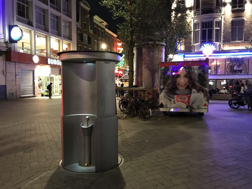 荷兰人略有同情心,急人民所急,想人民所想,大街上立一个简易男性小便池,愿者请方便。这是挺方便,走着走着就可以方便。不说大街上人来人往,就说旁边那幅招贴画 ,美女脉脉含情的看着你,有几个人能方便的出来?我是宁愿尿在裤子里面。