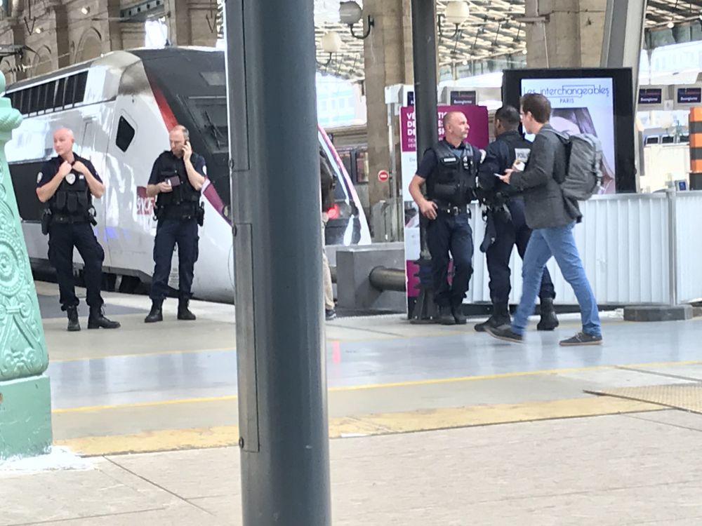 只有一次,在巴黎火车站看到几个警察扭住一个黑人小伙匆匆走过,因动作慢,没有抢拍到。看那黑人特别的黑,不象是恐怖分子,顶多是一个不够专业的拎包小毛贼。有趣的是,巴黎星期六那个大雨滂沱的晚上,有一个非法黑人移民,身手不凡,攀爬几层楼,救下一个悬空的小男孩。受到马克龙大人接见,身份转正,还有了工作。看来有真本事,还得干正事才行。