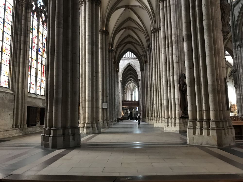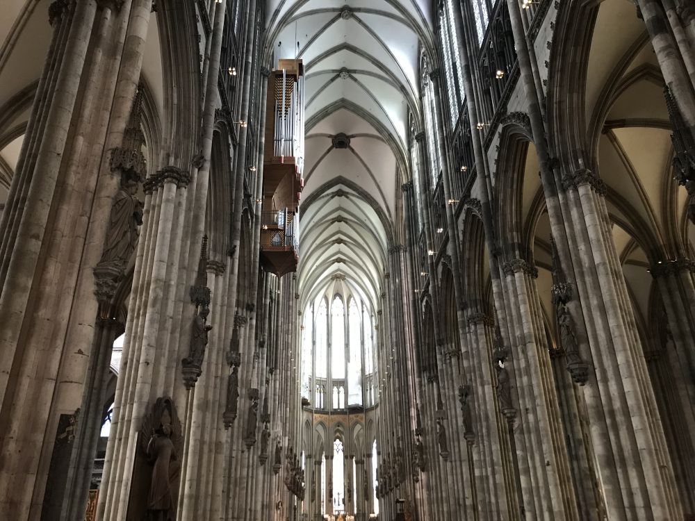 科隆大教堂,是位於德国科隆的一座天主教主教座堂,是科隆市的标志性建筑。一百五十七米高的钟楼使得它成為德国第二、世界第三高的教堂,另外也是世界上第三大的哥特式教堂。教堂从十三世紀中期开始建设,建筑面积六千平方米。工程时断时续,一直到1880年才由德皇威廉一世宣告完工,前后建造整整持续了632年。二战时,科隆被盟军多次轰炸,全城被夷为平地,包括科隆莱茵河大桥也被摧毁,沉入水中。唯有近在咫尺的科隆大教堂没有遭到轰炸。也许是因为有一个共同上帝的缘故,或是盟军也热爱建筑艺术,舍不得?