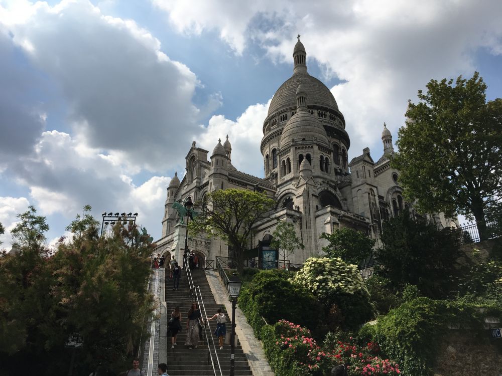 巴黎圣心圣殿大教堂,简称圣心堂。位于巴黎北部蒙马特高地上,是法國巴黎的天主教宗座圣殿,以耶穌圣心为主保圣而得名。兼有罗马及拜占庭建筑风格。1875年動工、1914年建成,1919年祝圣启用、1923年正式宣告完工。圣心堂最大特点是建在高地上,在教堂的前院就可俯瞰半个巴黎城。登上教堂的钟楼,整个巴黎一览无余。