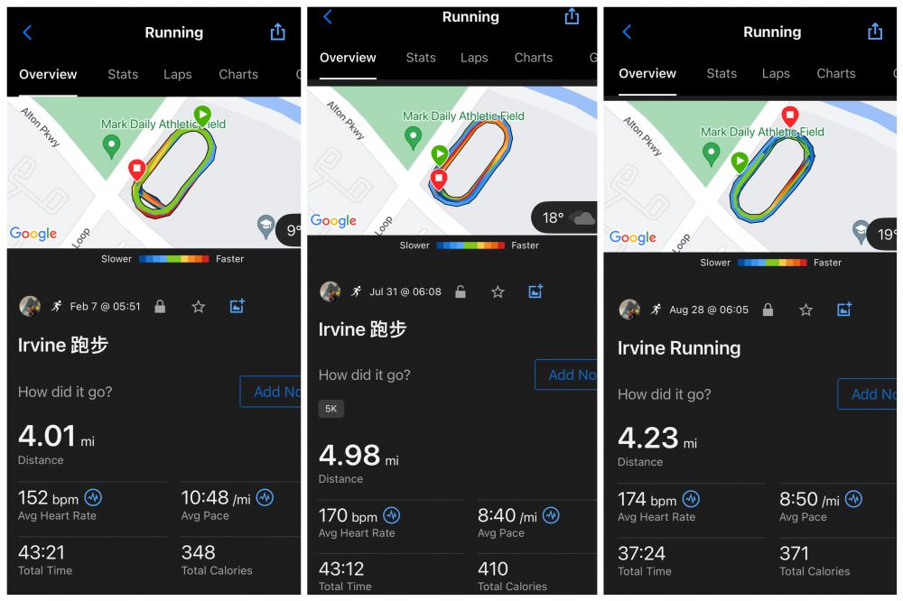 每一次都跑得死去活来~ 7/31第一次看到了希望,8/28是跑得最舒服的一次