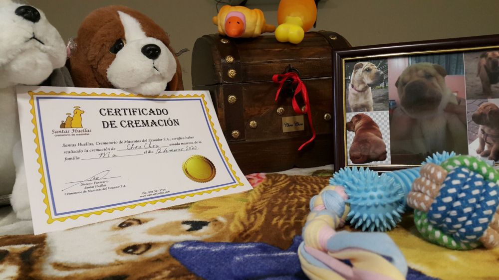 下面照片1是臭臭火化前照的,很安详,像睡觉,旧玩具,零食给他带路上吃。照片2是臭臭今天回家了,再也不会和娘分开了。新买了2只狗妹妹陪他。