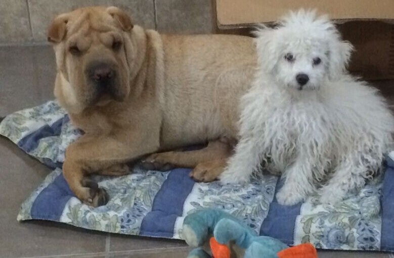 3个半月的沙皮宝宝--臭臭在饭店门口等客人呢。憨憨傻傻的。。 臭臭5个半月和乖乖弟弟在家中。长大了,看上去更傻了。16公斤,有点胖,医生说超重,胃口太好,什么都吃,实在不忍心扣他的口粮。