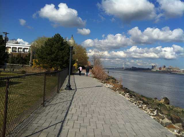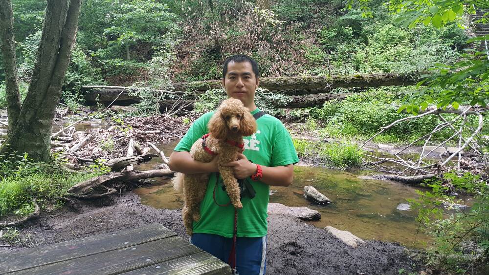 我的小狗不会游泳,我还得跳到河里去救它。这条河可不小,我估计脚是碰不到底的,而且从我这边游到河对面至少要2千米远。这条河就是纽约州和新浙西州的边界线。