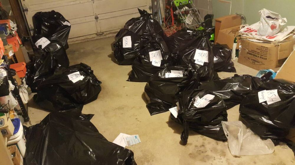 所以,这20年来,我家里囤积了很多垃圾。 但是,我妈是个很要面子的人。她平时把厨房和客厅都整理的整整齐齐的,这样家里要是来客人,不会丢面子。但是,她把垃圾都堆积在地下室,车库,和后院的工具房里。简直就像个垃圾堆,连走路的地方都没有。但是,她不单不舍得扔自己的垃圾,连我的垃圾,她也不让仍。包括:废纸,旧衣服,旧鞋,旧电器,等等。所以,平时我想整理都无法整理。 因为,这垃圾堆整理地再整齐,也还是垃圾堆啊,在根本上什么都没有改变。自从她回国后,我每星期扔出四个大垃圾袋的垃圾。我买来一整盒的垃圾袋,两个月间全部用完。一盒里有30个大垃圾袋。这还只是开始,我只扔了一成的垃圾,还有九成没扔呢。