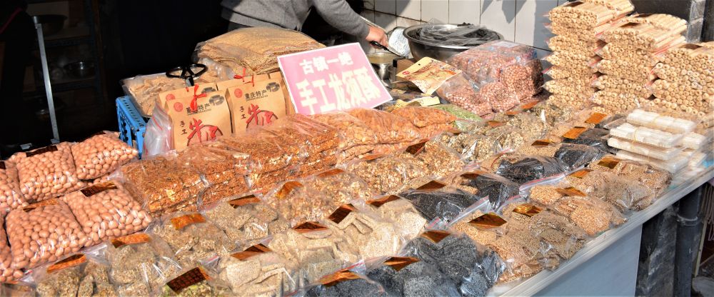 小吃店一个挨一个。据说,那家古镇鸡杂超好吃。我们怕耽过时间,没进去。