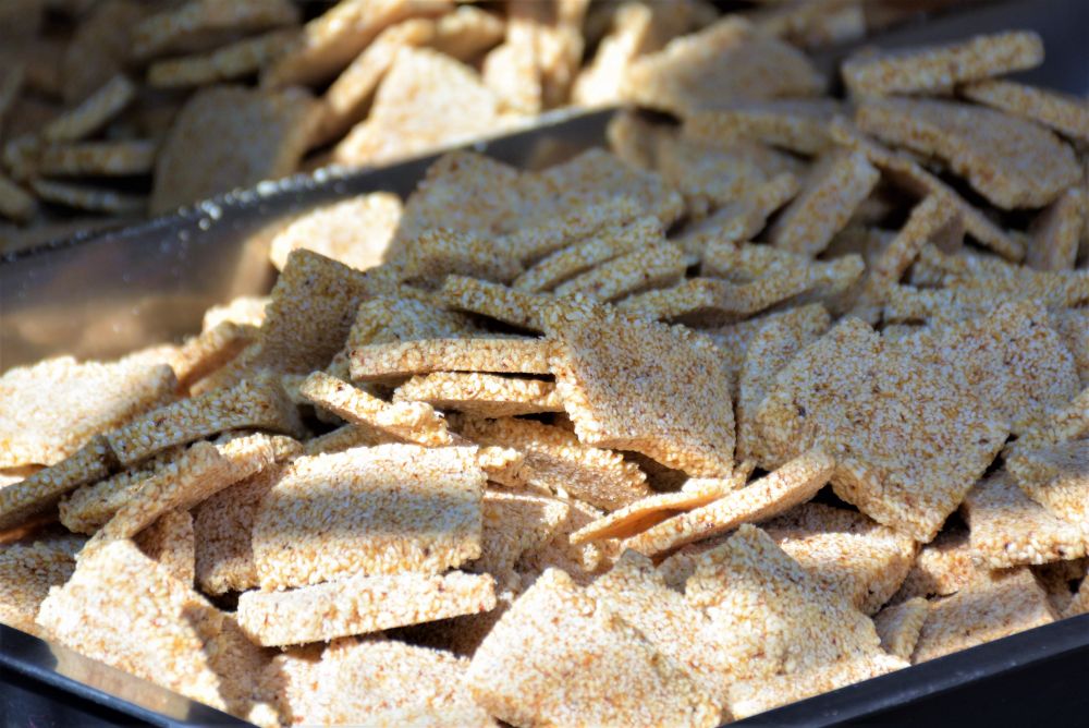 江津米花糖酥而脆,加上花生和芝麻,又特别香。