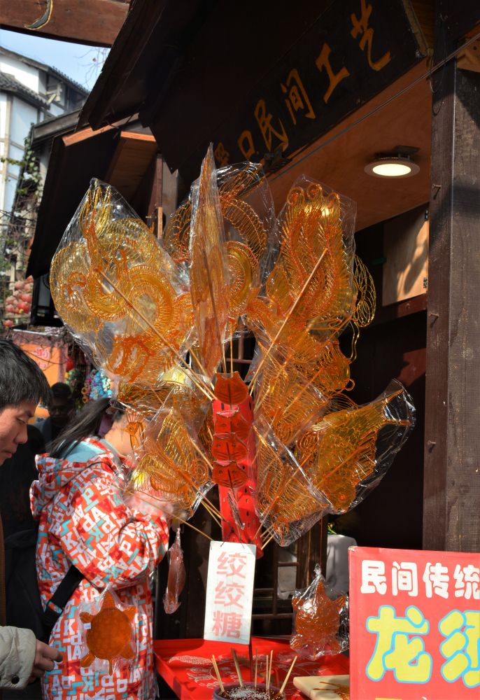 空气里飘着甘甜的糖的味道,焦香的烤糍粑味道,酥香的麻花味道,还有麻味,辣味。。。嗯,那一定是毛血旺和重庆小面的味道啰。。。
