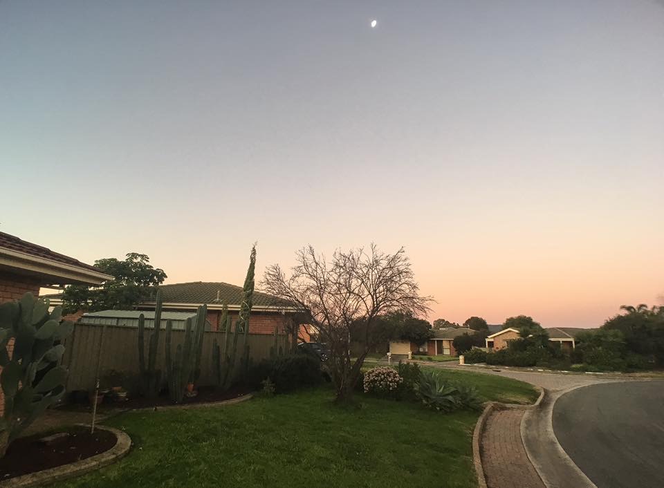 雨下得终于告一个段落,难得一整天的晴天日落后家门口用手机记录下了这温馨的天空。