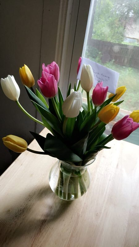 正当我们还在不断地埋怨自己的时候,也就在face time 后3-5分钟,女儿忽然又挂电话过来了,哭泣的声音明显从那一端经Speaker话筒传进我们的耳朵,我们急切的询问:“宝贝,为什么哭呀?”。女儿在哭腔中带着甜甜地说, 英文中夹杂着汉字:“我是Happy的哭!刚才对不起!没想到你们会online给我order蛋糕。”这可是女儿离开我们在外面过的第一个生日,我们怎能不做些什么呢。其实,她不记得,她第一个学期我们还给她邮寄过中秋月饼呐!后来,为了弥补这个短暂的不愉快,我们决定再增加一个项目:网上买一盆鲜花送过去。选择了郁金香,愿女儿长大后博爱,体贴,高雅,富贵,能干,聪颖。女儿第二天收到15朵美丽的郁金香,还有她喜欢的chocolate / strawberry蛋糕,开心的神态我们从微信中不断飘出的心型能充分的体会到!