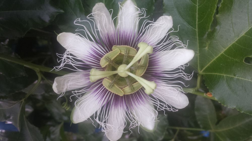 百香果藤仍然是那么枝叶繁茂郁郁葱葱,花朵是那么可爱诱人,果实是那么饱满充实。