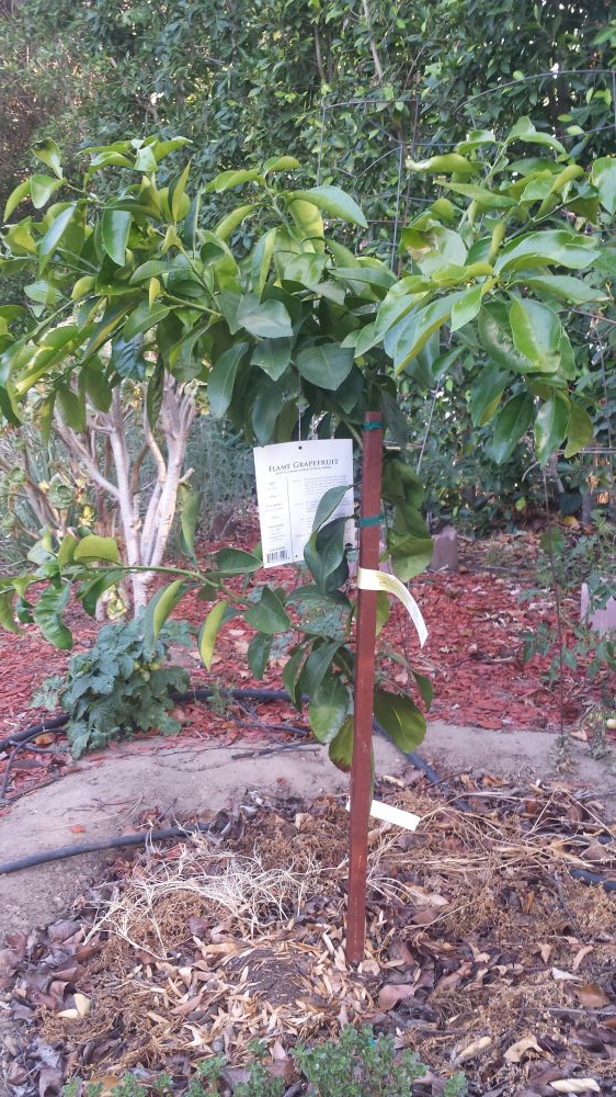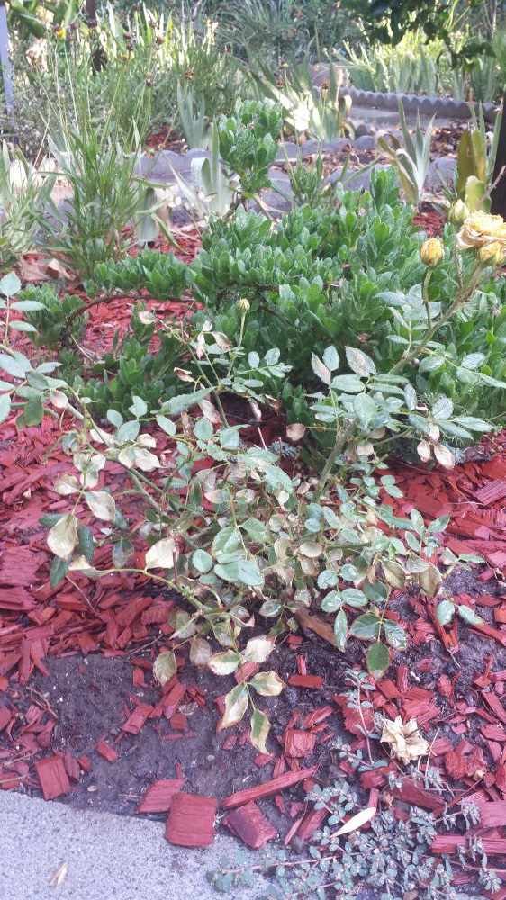 可怜的小玫瑰花,黄黄的小花朵还挂在树梢,但已经没有往日鲜艳,蔫蔫的。右边也是3-4个月前种的桔科柚子树。