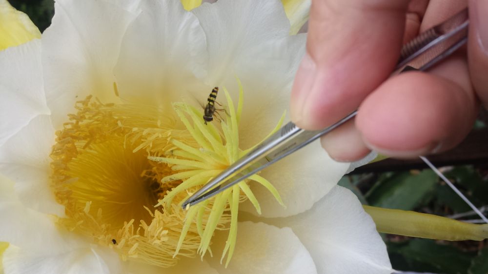 火龙果是雌雄同花。园艺师朋友告诉偶,人工授粉能提高结果率。