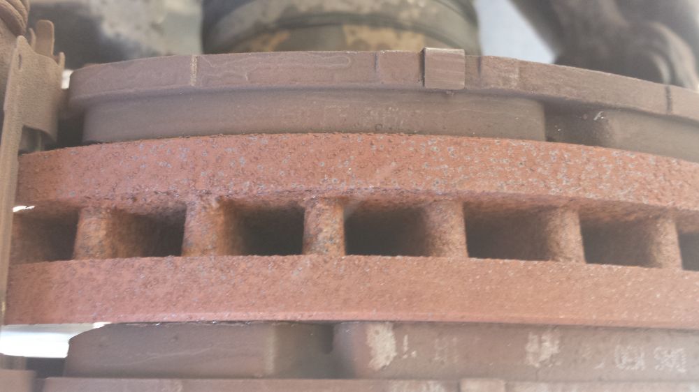 由于车子在刹车时有点抖,根据多方面查证和询问,初步判断可能是由前刹的dysfunctional rotor引起的,所以昨天就把前刹拆了看看,当然之前已经把需要换的pads和rotor都买好了,指望问题的症结就在这里。可是弄完之后试车时感觉到,抖动虽然相当明显的降低了,但刹车时还是有一些,可能剩下20%左右,不知何故。抖动的规律是这样的,如果把脚踏刹车板的强度分为0—100%的话,20%之前感觉不到抖动,若用力20%—50%,抖动的节奏就出现了,包括盘子和车身的抖动,再继续重踩刹车超过50%,所有抖动立马消失。(这里的用力百分比是个比喻,可能没有那么精确,只是用来说明轻刹和重刹没有抖动)