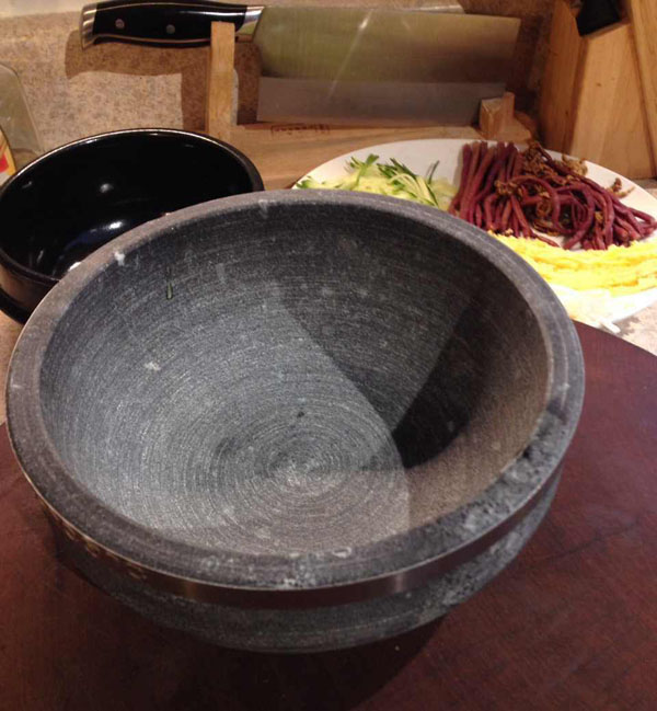 我这次用的石锅,没有的话用砂锅也可以,像图中那只黑色的是韩国人用来喝汤的很厚重的砂锅