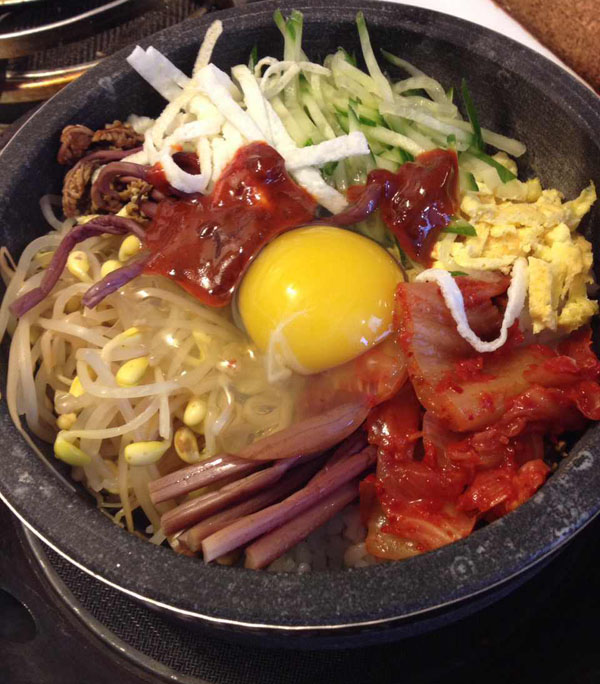 石锅拌饭其实就是剩饭剩菜混在一起吃,懒人的福音。