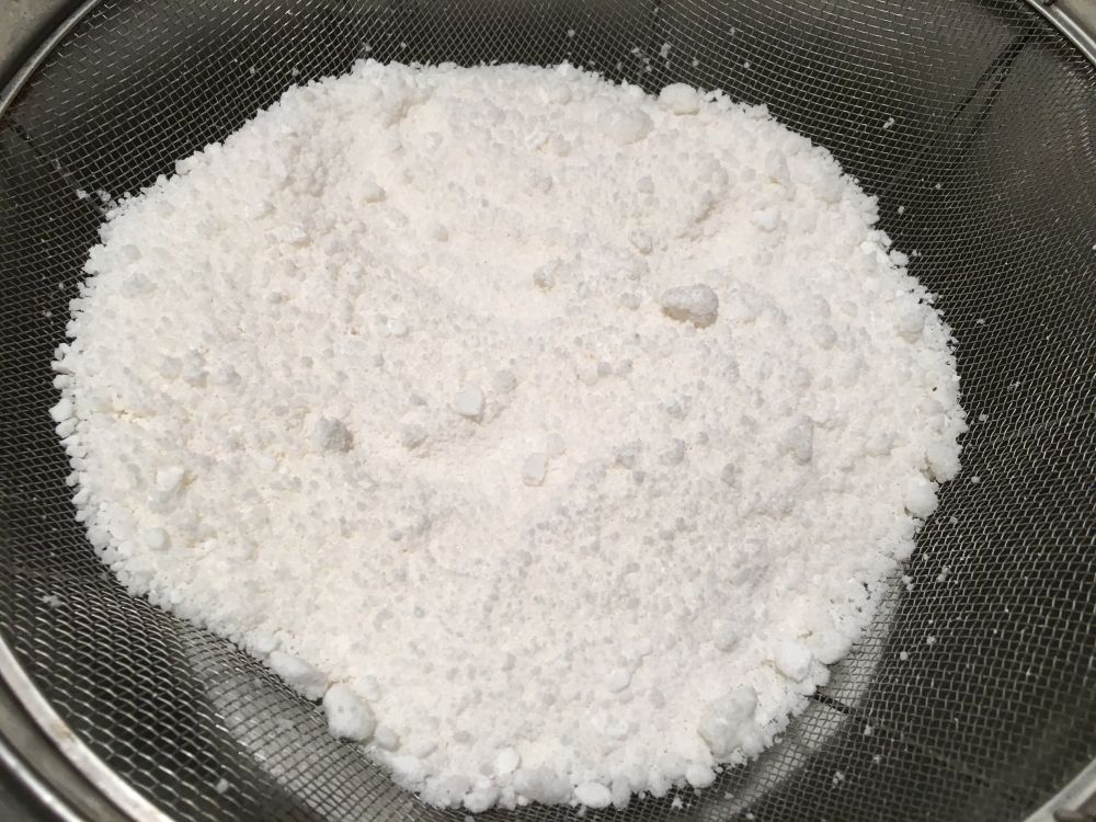 松糕的主要成份是糯米粉和粘米粉。母亲的松糕配方特点是:用水浸透过的大米和糯米打成的粉,粗细均匀,不用再加水,容易控制米粉的湿度。