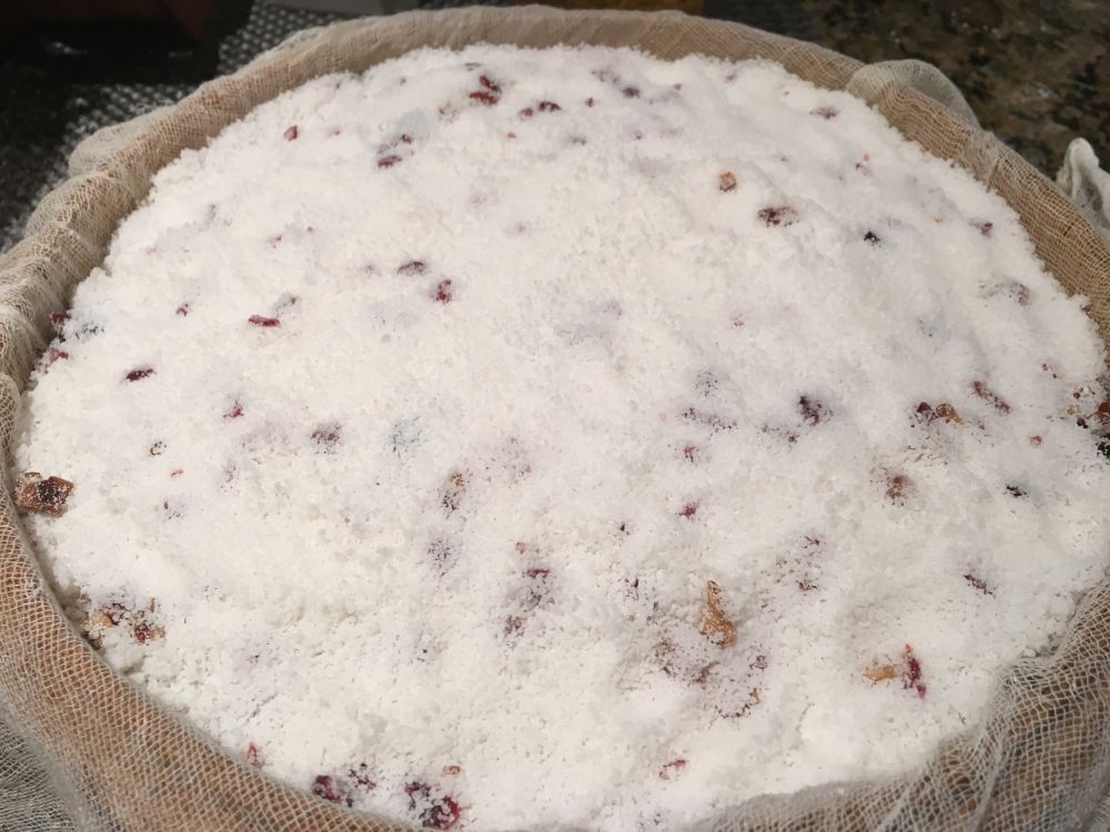 用母亲的松糕配方,今年过年时做了二块松糕。 一块带去朋友家聚餐,一块送给朋友。