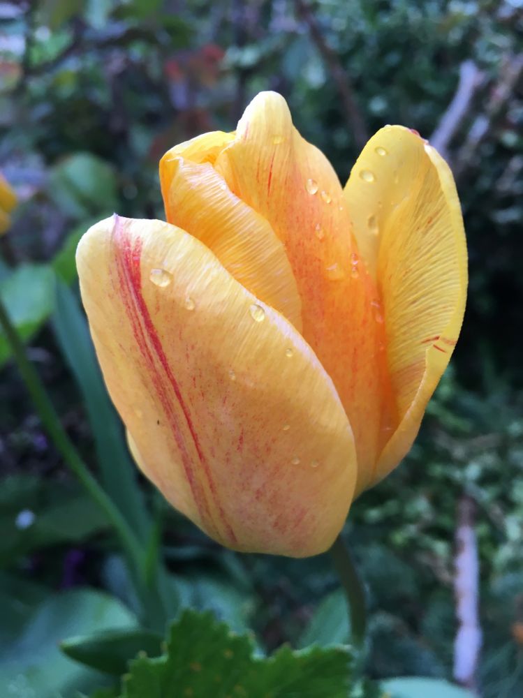 春暖花开。 前院的花坛五彩缤纷。郁金香先开花。