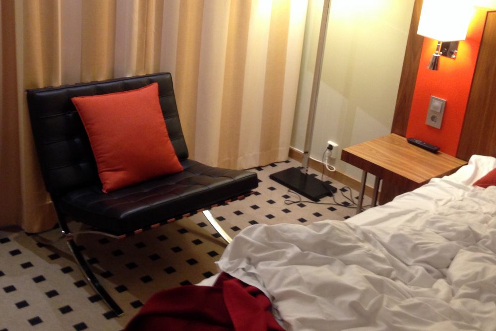 昨晚飞到挪威卑尔根,机场快线巴士送到位于老城的旅馆门口。客房没有美国的大,却是典型北欧风格。女儿发现房里的椅子是设计史上经典的巴塞罗那椅!单价几千美元,我公司办公大楼大堂里仅有几吧,作为豪华现代风格的象征。这个不是山寨货吧?挪威人的经营理念好像有点儿什么。