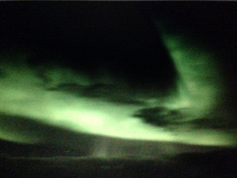晚餐前还大雪纷飞,刚刚吃完,又有北极光出现,比前两天更加明亮。瑩绿色洪流从远处山后流过夜空,跃到船顶后面。(可惜我不在船顶层,不能看全景。)光流変幻莫测,其实现在已是中国新年凌晨,就当作新年焰火看吧。那就在欧洲最北端的风雪与极光中,祝亲朋好友们新年快乐!