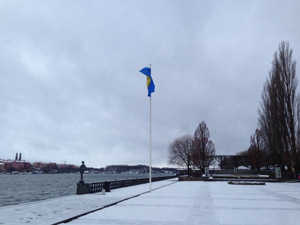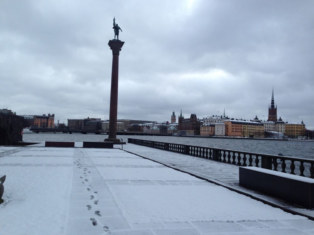 周日早起去看斯的哥尔摩地标:市政厅。晨曦初照,薄雪轻掩,清晨寂声,脚印单行。水边广场的石板路,在冷风白雪下,透露出低调的高雅。我却被这冷、静吸引。昔日王国的光彩淡化成久远的黑白,静静的画面,凉凉的画框。