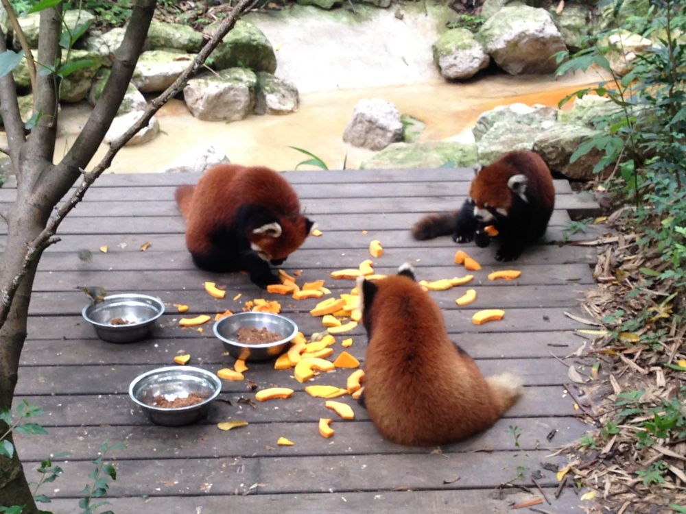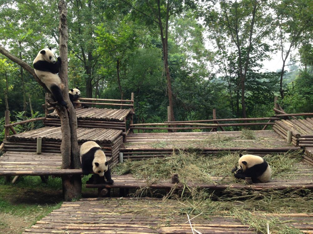 到成都熊猫基地,从小到大没有见过这么多大熊猫。虽然天热,大部分都在睡懒觉,睡姿都萌得????。也有几个在吃竹子,姿势也太舒服了,国宝就是可以一幅目中 无人的吃相。小熊猫也不少,有的居然跑到游客道上在人群里穿梭,引起一片欢呼。大人们都开心的不得了,照片拍不停。小孩干脆就不想离开了。有小孩的家庭成 都游,熊猫基地是绝对要去的首选。不远,就东北郊三环外。